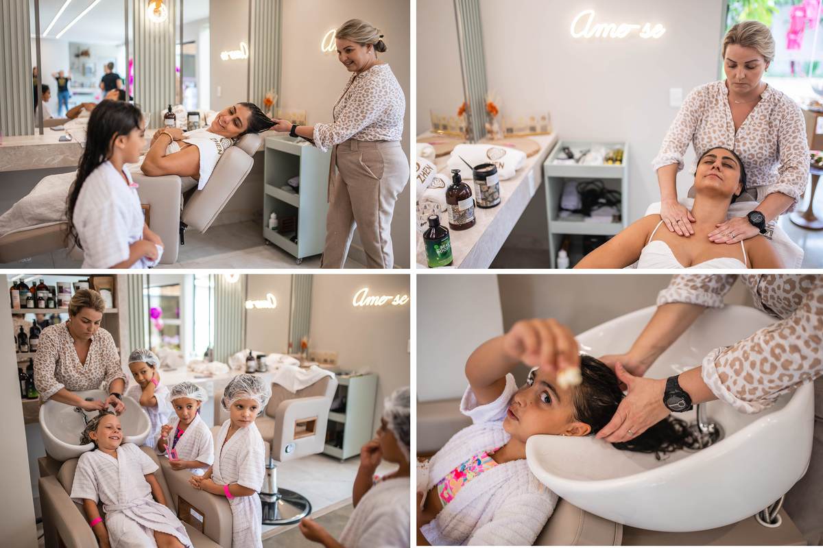 - A Clínica Zhen fica no bairro São Pedro, em Juiz de Fora e todos os procedimentos realizados nas meninas foram de cuidado e tratamento, inclusive nos cabelos (o que eu achei um máximo!)